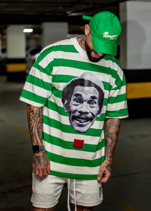 Conjunto Camiseta Oversized Seu Madruga Bege E Shorts Preto