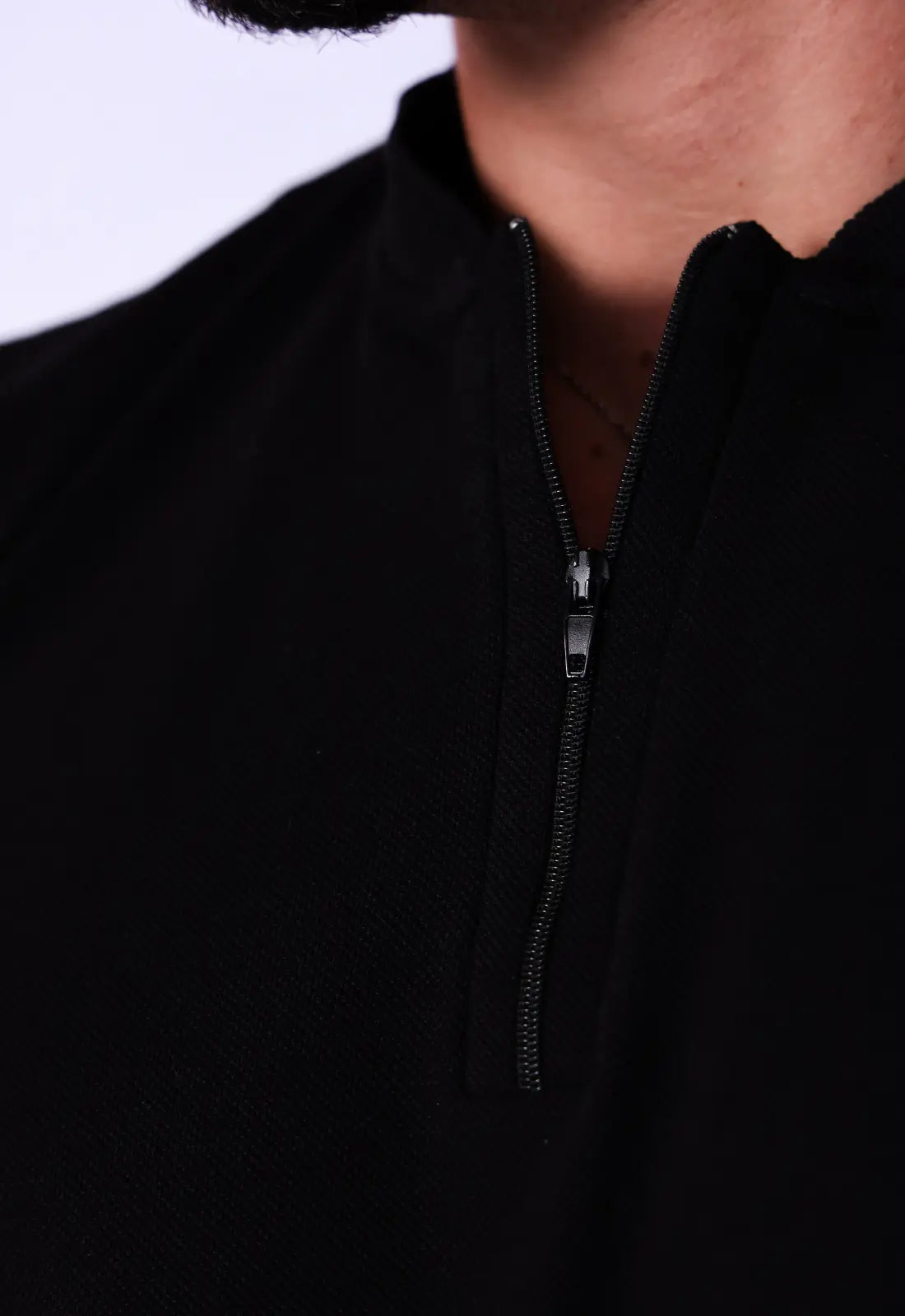 Camiseta Slim Gola Padre zíper Preta: Estilo e Conforto